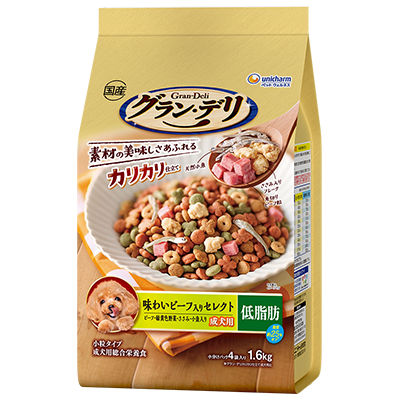 グラン・デリカリカリ仕立て低脂肪 味わいビーフ入りセレクト ~脂肪分約25%カット~ | 穀物 | 1,518円 | 約340kcal/100gあたり | C |