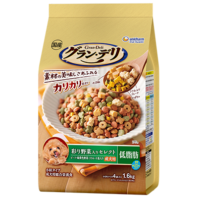 グラン・デリカリカリ仕立て低脂肪 彩り野菜入りセレクト ~脂肪分約25%カット~ | 穀物 | 1,518円 | 約340kcal/100gあたり | C |